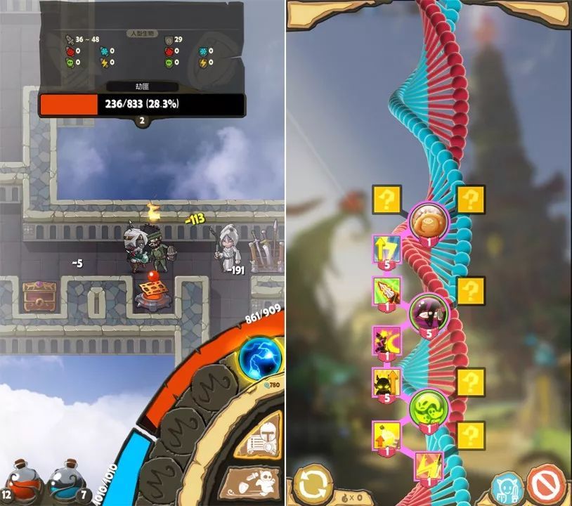 游戏的操作其实是很简单的,上手简单“点击-战斗”即可。只要稍微熟悉游戏之后,就会发现调整一下某些操作,可以让游戏更有效率。比如:游戏里的血瓶,每次回复一半的血量,但战斗的时候并不显示血量的百分比,而且血条是弧形,不是太容易估计长度;但实际上,血条中心有一个刻度,正好就在50%的位置,所以只要发现血量低于这个刻度,就可以补血了。