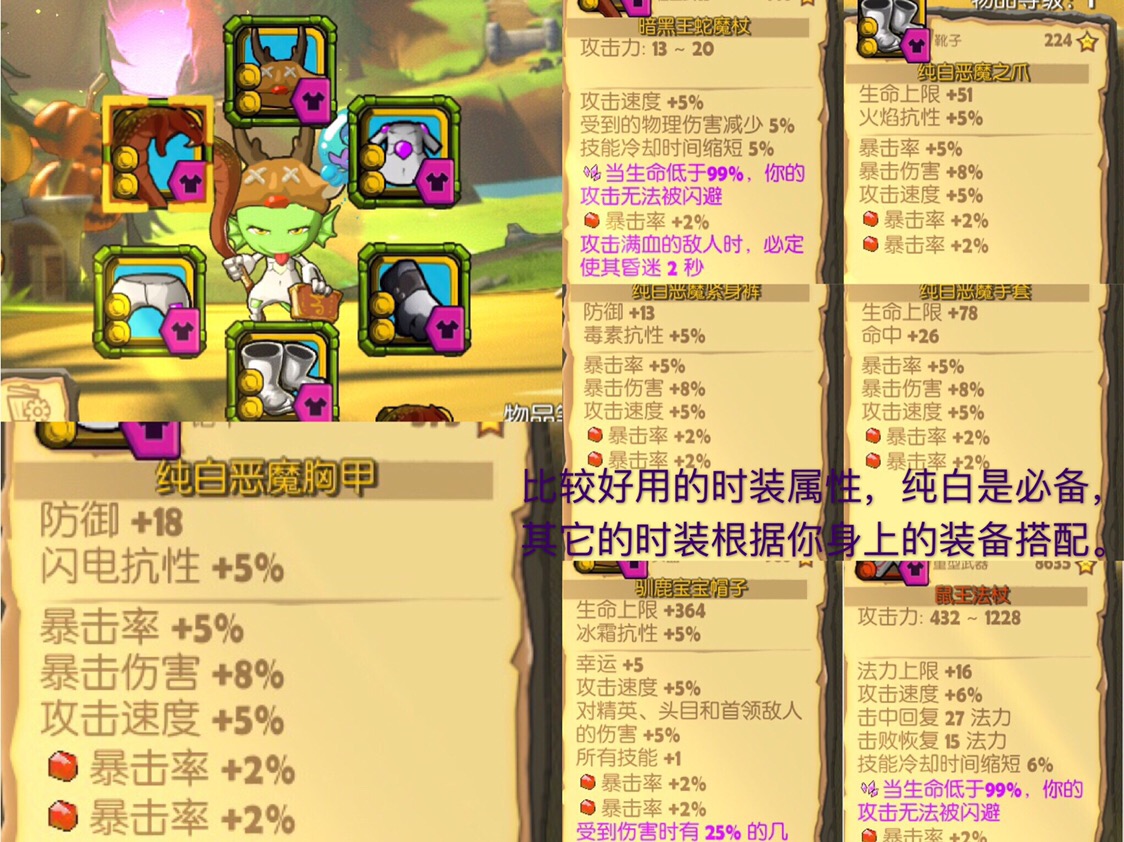 14、其它精灵,每种精灵都有它的用处,火焰精灵伤害最高,在普通关卡很好用,绿野精灵配合80的正义突袭加鼠王法杖打无尽模式也很舒服,各种套路需要自己慢慢摸索。